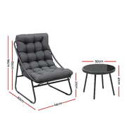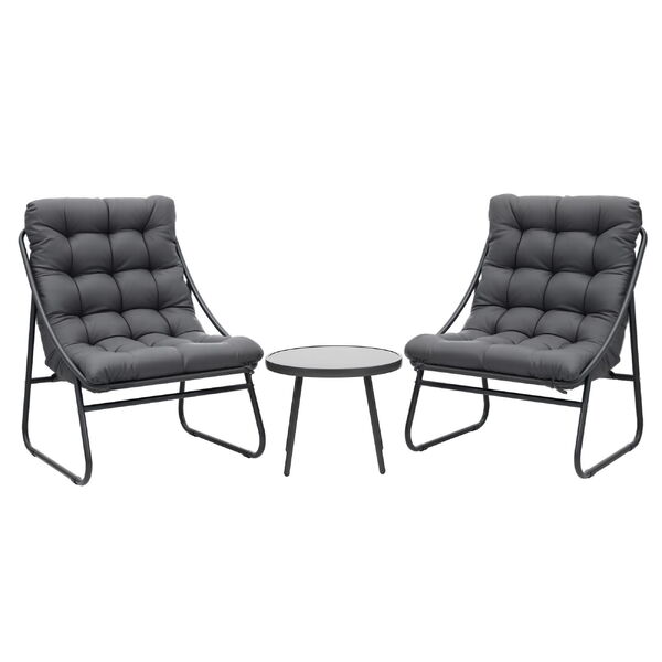 Upgrade your outdoor oasis with the Bistro Set, designed for style and long-lasting performance. This 3-piece set features a sturdy steel frame with a durable, weather-resistant powder coating to withstand the elements. The Textilene backrest offers superior breathability and comfort, while the 9cm thick polyester seat cushion (180g) provides generous support. A sleek, tempered glass tabletop adds modern elegance and features a smooth surface for easy cleaning. Complete with non-slip feet for stability, this set is perfect for both indoor and outdoor use. Its easy assembly ensures you can relax and enjoy your new setting in no time.