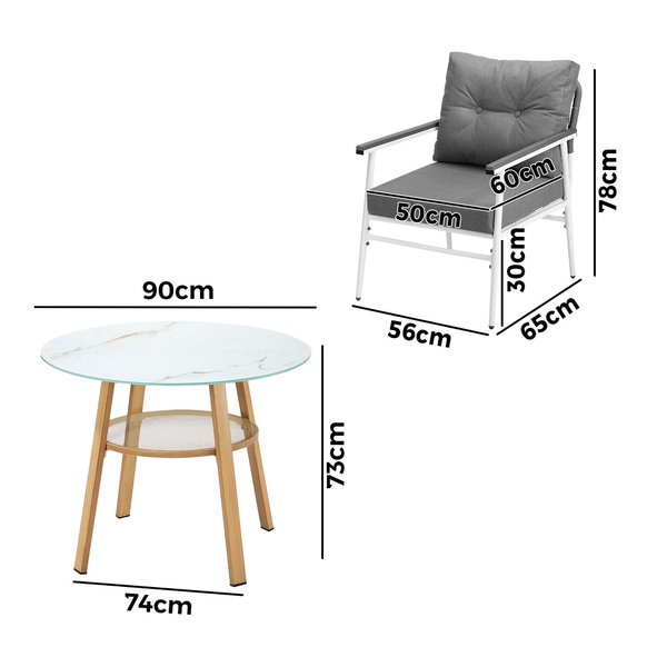 Living life to the fullest. Chilling out under the sun, moon and stars. Alfresco dining with friends, family or just with your precious me-time. Simply pursuing and enjoying life that is meant to be. And the Outdoor Dining Set is ready to be there at home with you. Stylish. Contemporary. Beautiful. For the dining table, a white ceramic tempered glass top with handy storage shelf beneath. And for the dining chairs, equally attractive pieces that go well with the table. The set has all the attributes of chic outdoor furniture that resonate with your discerning lifestyle. Have your lattes, your favourite brews and savour delectable cuisines and other gastronomical delights. Eat, drink and be merry! But how does the dining set stand up to the harsh and sometimes fickle Australian weather? No worries mate as it is all weather-resistant, chairs and table, with strength and durability for robust use. Not least, this dining setup also looks fabulous with any indoor eclectic styling ideas that you may have. Convinced that this delightful outdoor package is for you? Click on the Buy option and soon you will be feasting to your (and many others too) heart's content at the Outdoor Dining Set day and night, night and day, in every season.