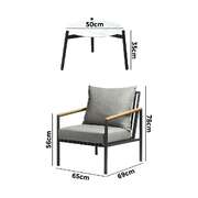 3PCS Outdoor Lounge Set Coffee Side Table with Chairs
