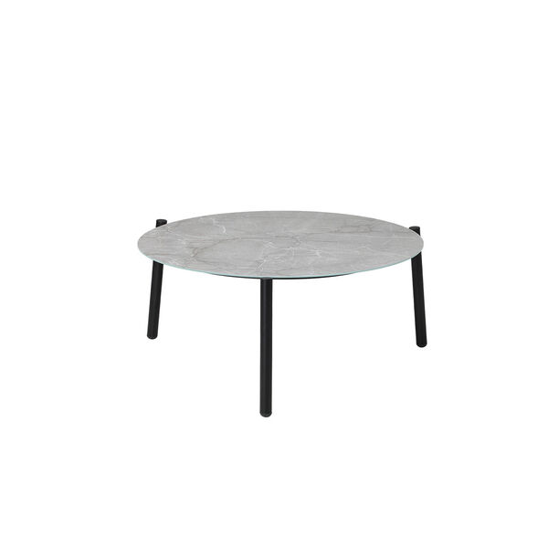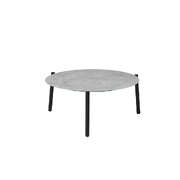 Design-wise, the three-legged profile of the coffee table is unique in stature while extending its durability and strength with a black powder-coated steel construction.