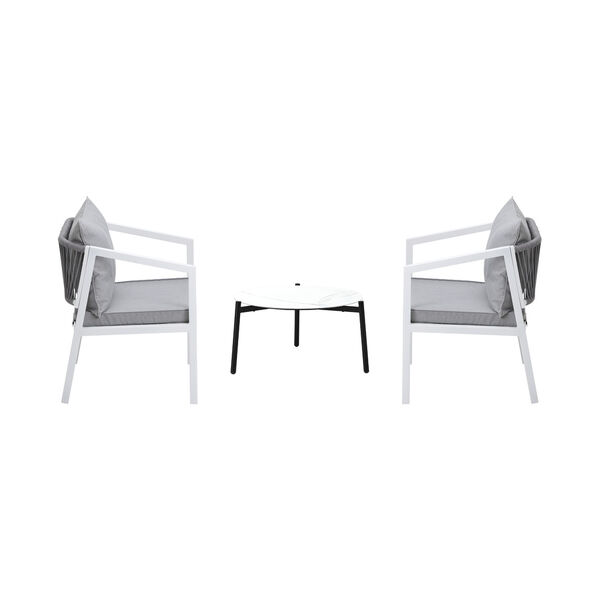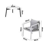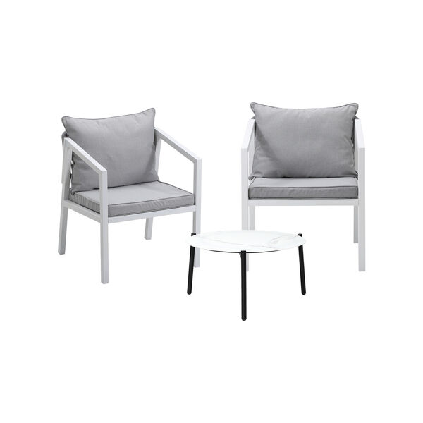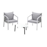 3PCS Outdoor Patio Set White 50cm Coffee Table White Chairs