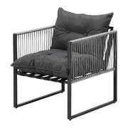 Stylish. Contemporary. Cool. Such as the stringed PE wicker embellishments that add plenty of charisma and character to the chair. It has all the hallmarks of chic outdoor furniture that resonate with your discerning lifestyle. Sit back and feel the comfort of the well-padded cushioned seat and backrest and relax your arms on the smooth and supportive armrests.