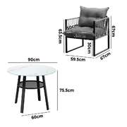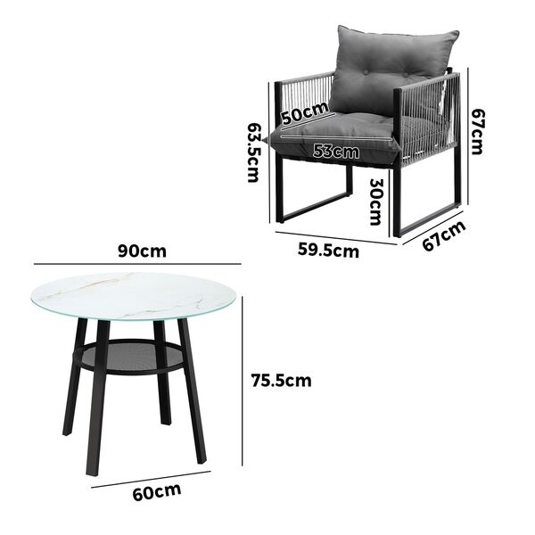 3PCS Outdoor Dining Set Round Table PE Wicker Chairs