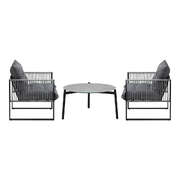 3PCS Outdoor Patio Set Grey 70cm Table Cushioned Armchairs