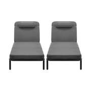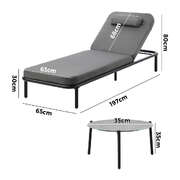3PCS Sun Lounge Outdoor Lounger Set Table Chairs Grey