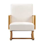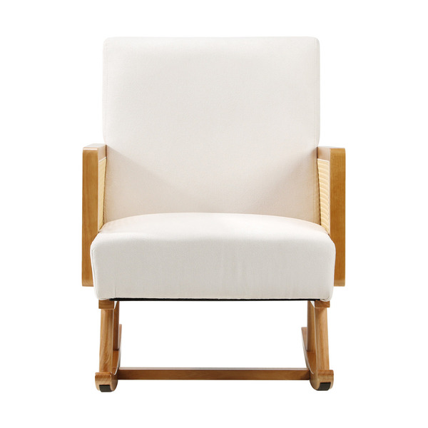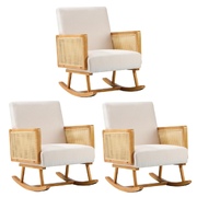 3x Rocking Chair Nursing Armchair Linen Accent Chairs PE Rattan Beige