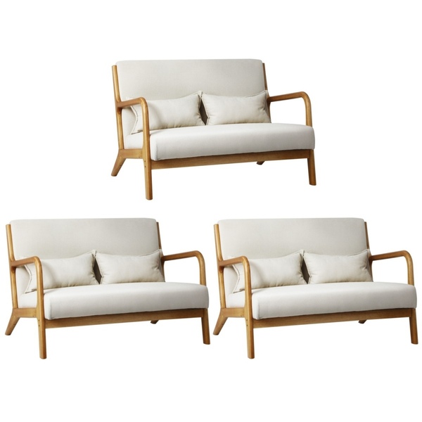 3X Armchair Lounge Chair Accent Armchairs Couches Sofa Wood Light Beige