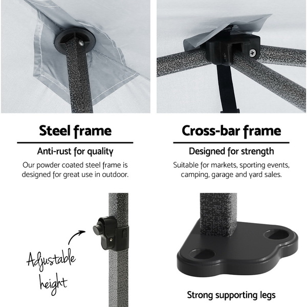 The gazebo has 3 adjustable height levels to suit different height needs. It is ideal for markets, sporting events, camping, garage and yard sales, school events, trade shows and many more.