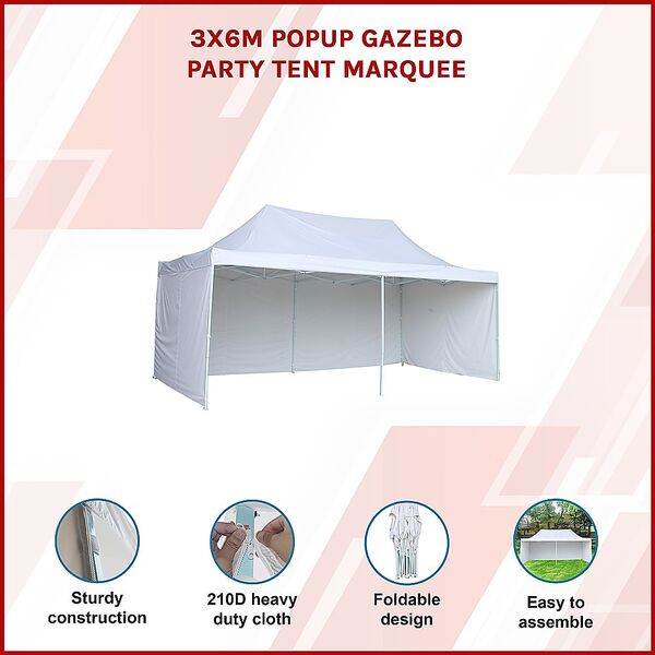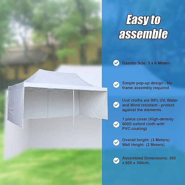 From outdoors - This easy pop-up Water, Wind, UV resistant 3x6 meter Gazebo / Marquee with heavy duty frame is perfect for outdoor entertaining.