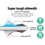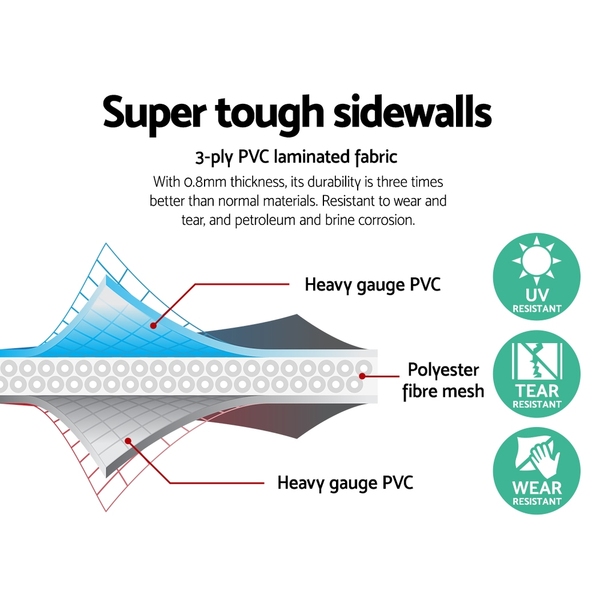 Heavy-duty PVC and polyester 3-ply side walls, UV resistant