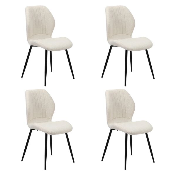 Set of 4 Dining Chairs Padded Seat Armless Boucle White
