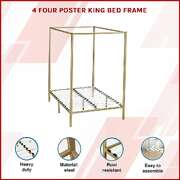 4 Four Poster King Bed Frame Slat Support Wooden Frame King Size