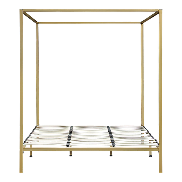 The bed's sleek gold frame is trendy and modern, making it a perfect choice for the 21st Century home. But if you prefer a more old-style', romantic look, its modest design means that it is easily dressed with drapes in order to achieve the style you want. What's more, the frame's neutral gold allows it to fit in with any colour scheme - Versatility at its best.