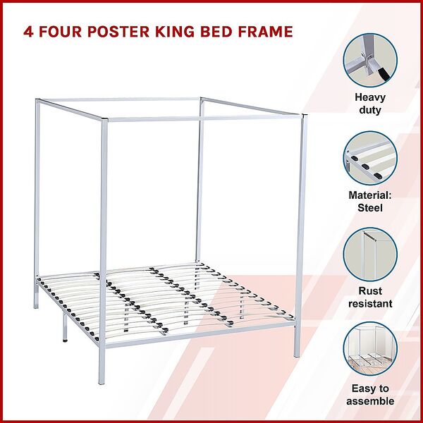 4 Four Poster King Bed Frame Slat Support Wooden Frame King Size
