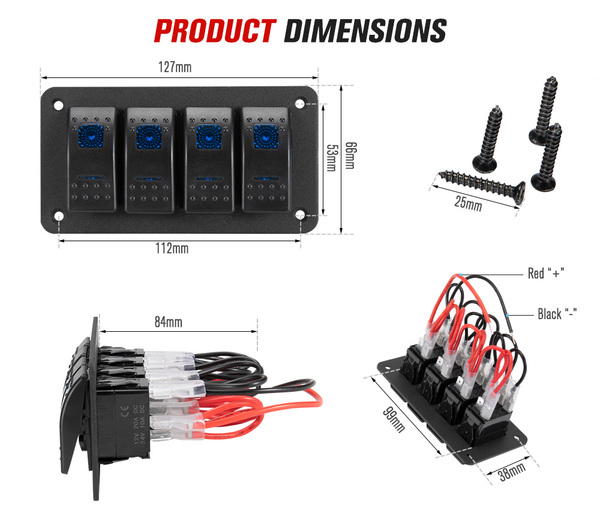 Versatile Functionality: This 4 gang rocker switch panel works on most 12V-24V UTV/ATV, boat, caravan, bus, trailer, truck, RV and yacht, etc.