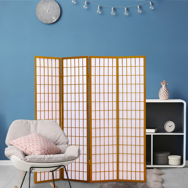 4 Panel Free Standing Foldable Room Divider Privacy Screen Wood Frame