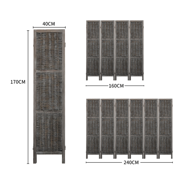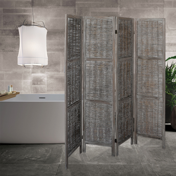 4 Panels Partition Room Divider Grey