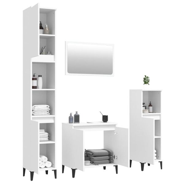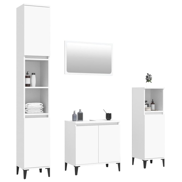 This stylish bathroom furniture set, featuring spacious storage space, is an excellent addition to your bathroom, giving it a tidy and striking appearance! Durable material: The engineered wood is of exceptional quality with a smooth surface and features strength, stability and resistance to moisture.Ample storage space: These bathroom cabinets offer ample storage space for keeping your bathroom supplies well organised.Metal feet: The metal feet add a modern and calm style to your interior while ensuring stability.Practical mirror: Use the included mirror to neat your daily dressing. It also adds an excellent appearance to your home decor.Easy-to-clean surface: The bathroom unit is easy to clean with a damp cloth. Warning:To prevent it being overturned, this product must be used with the provided wall attachment device. Good to know:Screws and plugs for inside the wall are not included. We advise to find and use screws and plugs suitable specifically for your walls. If you're not sure, you can consult with a professional. Please read and follow each step of the instructions.