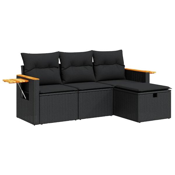 Elegant 4 Piece Garden Sofa Set with Cushions Black Poly Rattan