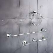 Underneath the sophisticated chrome finish is sturdy zinc base metal, providing durability that will hold up over the years. A bracketing system secures the set to your wall, concealing the screws for a seamless, sophisticated look. Wall-mounting hardware is included, so you can install it the moment it arrives. Combine timeless aesthetics and years of reliable service with this chrome bathroom set. Get yours today.
