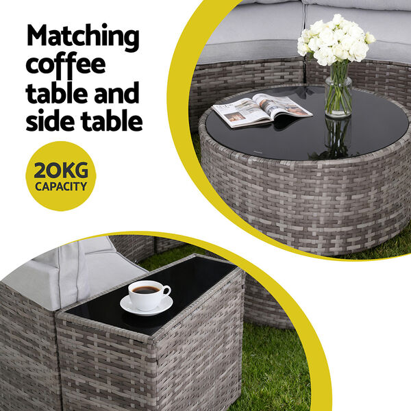 Get outdoors just in time for summer with the 4-seater Outdoor Sofa Set. Featuring 4 single sofa, 2 side table and a wide coffee table, there's plenty of space for the whole family. The set is easy to assemble, and you can easily configure the seating into your perfect outdoor set-up. The set comes with thick cushions for comfort. Additionally, the matching table with 5mm thick tempered glass top, and durable powder-coated frame ensures strength and durability. Maintenance is as easy as wiping down the furniture, and you can remove the cushion covers for even easier cleaning. So what are you waiting for? Make the most out of the beautiful weather with a 4-seater Outdoor Sofa Set.