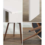 The accompanying rectangular table is more than just a surface for meals, it is a focal point for your dining room. Designed with practicality in mind, it offers ample space for feasts. Fostering an environment where connections are made, and memories are created, our set brings versatility to your dining space.