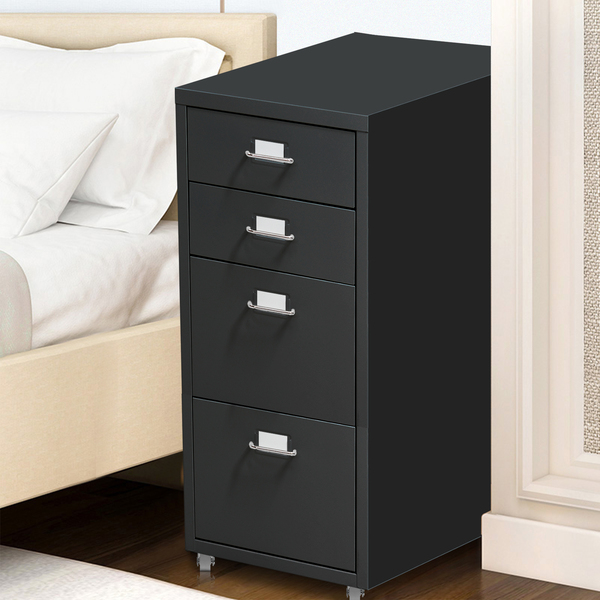 It is made of heavy-duty stainless steel. With steel construction, it is highly resistant towards water and rust, no more worry if you accidentally spill liquids such as water over it. Designed to be non-toxic and odourless for safer usage. It can easily fit in tight spaces with its compact size. Built-in wheels provide easy and convenient movability. Position it as the way you prefer; unlike traditional filing cabinets, it does not restrict you. Equipped with aluminium handles for accessible and smooth operation. Organize all your files in its spacious 4 tier capacity. All the files can be easily categorized with its unique label holder.