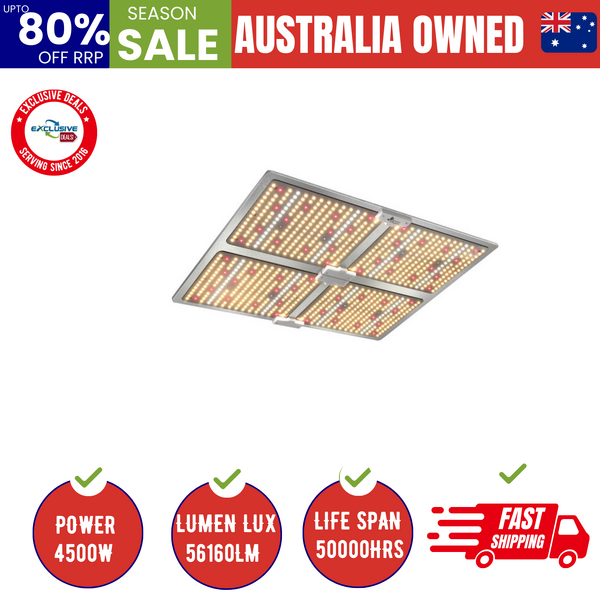 High Energy Efficiency with about 2.6 umol/J, delivers powerful light output and uniform canopy penetration to resulting maximum higher yields. Only consumes 450w, running 50% less power than the HPS or other SMD LEDs or Blurple lamps. Veg footprint is 4 x 4 ft, Flowering footprint is 3 x 3 ft.