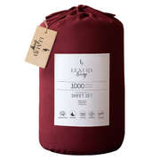 4pc 1000TC Cotton Rich King Bed Sheet Gift Pack CVC Microfibre Burgundy
