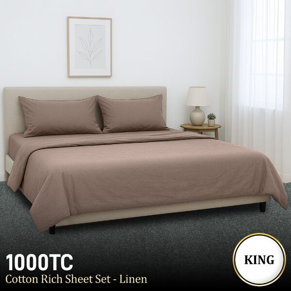 4pc King Bed Sheet Set 1000 Thread Count Cotton-Rich CVC Microfibre Linen