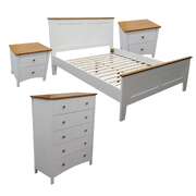 4Pc Queen Bed Suite Bedside Tallboy Bedroom Furniture Package - White