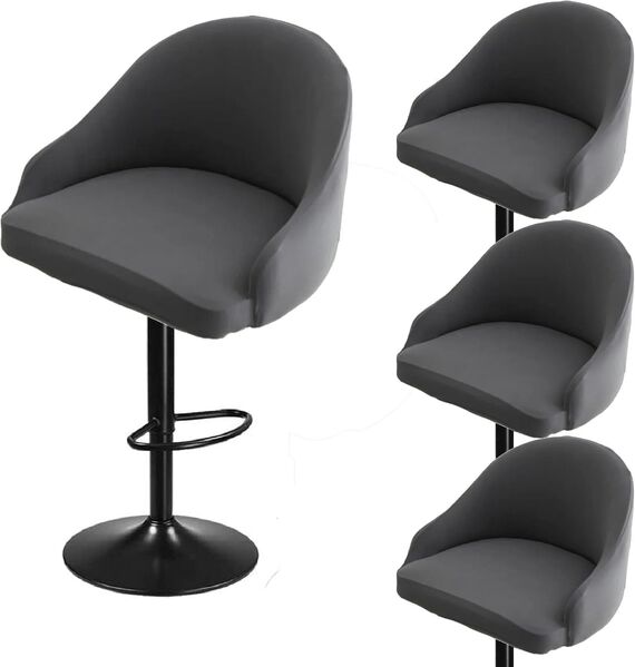 4PCS Bar Stool Slipcovers Stretch Swivel Chair Covers with Back Grey