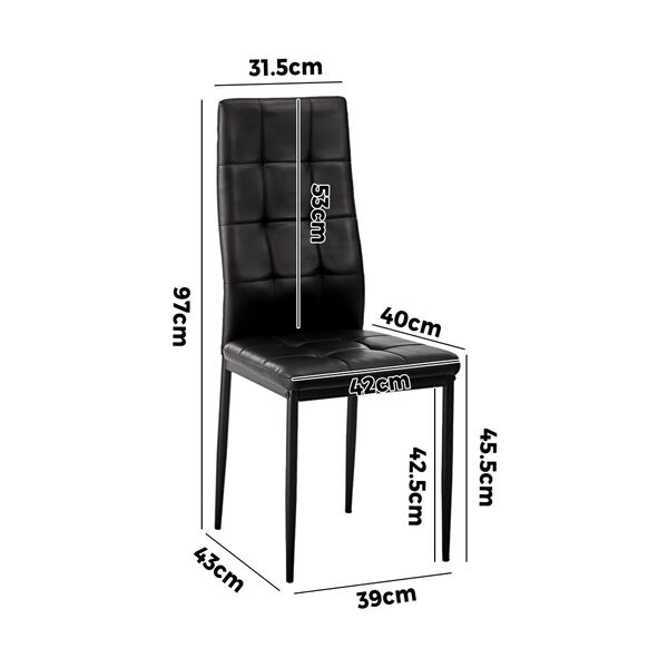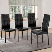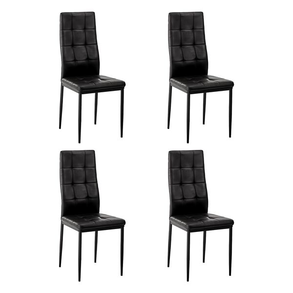 4PCS Dining Chairs High-Back Faux Leather Square Pattern