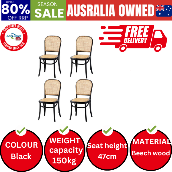4PCS Dining Chairs Wooden Chairs Rattan Accent Chair Black