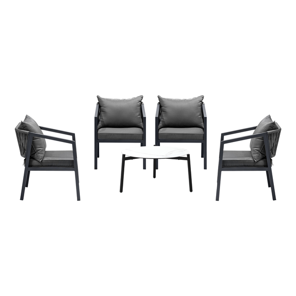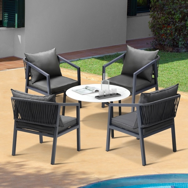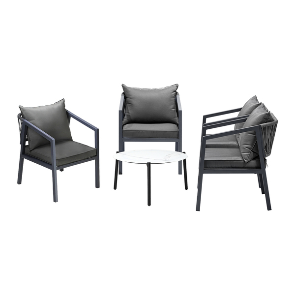 4 Seater Outdoor Patio Set White 70cm Coffee Table Grey Chair
