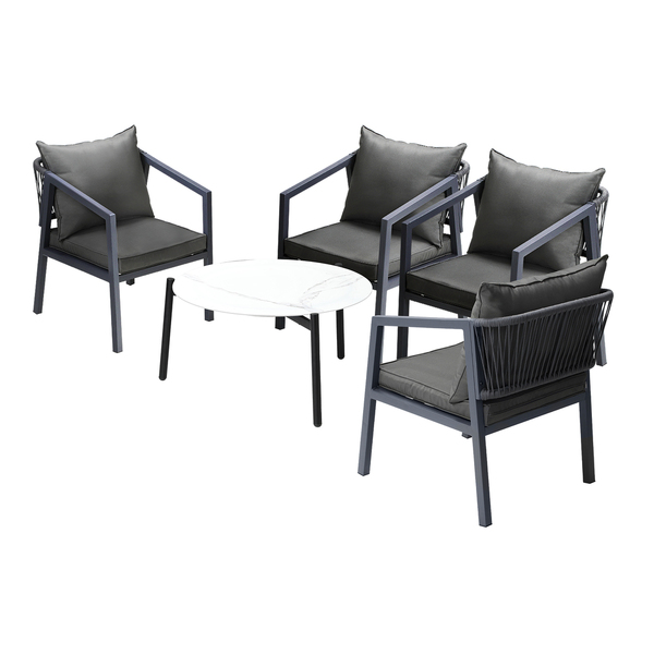 If you are looking for a classy and sophisticated outdoor set that adds a touch of marble-resque aesthetics to its setting, then this Outdoor Set is well within your radar of stylish furniture. None the ordinary and everything the exceptional.