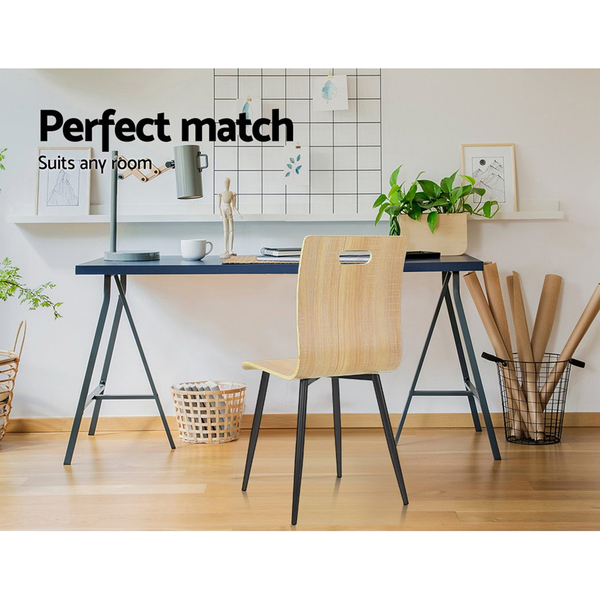 Simple and elegantly styled. Our Artiss Dining Chair is a firm statement in sophistication that stands proud in your dining room. The chair is designed to easily match and blend with your preferred décor with its neutral tones. Its powder-coated iron frame features a raw and yet refined look that complements the elegantly contoured bentwood design and lovely wood grain finish of the seat and back. Constructed with powder-coated iron and reinforced steel fixings, the chair is sturdy and steady with longlasting durability. Of course, there are no rough edges in any part of the chair for a comfortable sitting. Your floor is also aptly protected with anti-slip feet attached to each leg of the chair. Turn your dining room into a beautiful setting with our dining chairs. And if you want a change of scenery, simply stack the chairs together for easy storage.