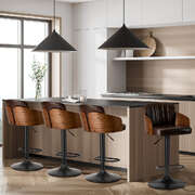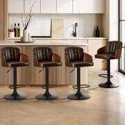 4x Bar Stool Adjustable Height Swivel Leather Bar Chair Brown Kitchen Seating