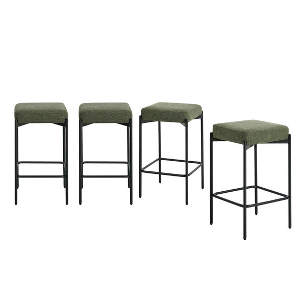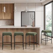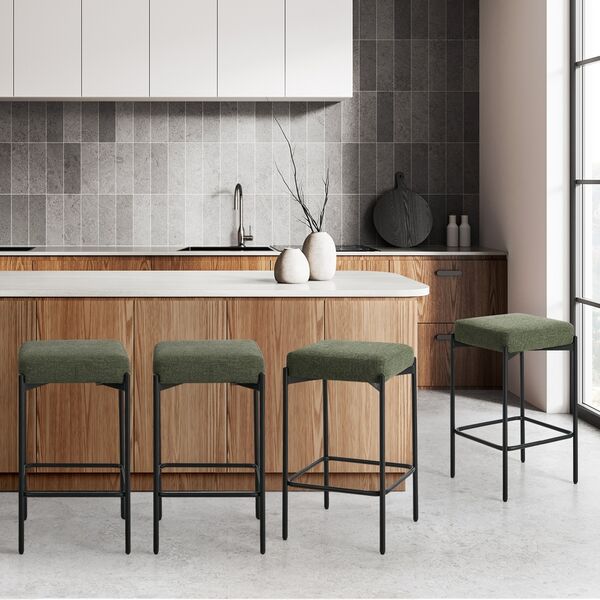 4x Bar Stools Kitchen Counter Stool Linen Seat Metal Green
