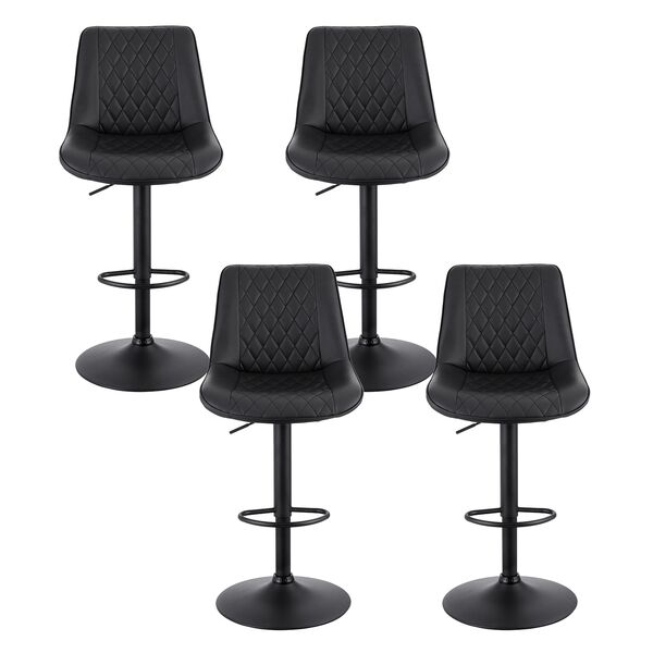 Upgrade your seating with the Set of 4 Bar Stools, designed to combine style and comfort. Featuring a unique ergonomic diamond outlook, these stools are adjustable from 96-116cm with a reinforced gas lift cylinder for personalized comfort. The premium PU leather seat is soft, durable, and easy to clean, while the sturdy metal construction supports up to 120kg per stool. A semi-circular footrest and anti-slip floor protectors ensure stability and floor safety. Perfect for kitchens, cafes, or pubs, these stools are easy to assemble and elevate any space effortlessly. Add them to your décor today!