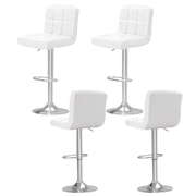 4x Bar Stools Leather Gas Lift White Adjustable Height
