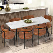 Need a makeover for your dining chairs? Time for an update? Look no further than the PU Leather Dining Chairs. These will certainly help to lift your dining ambience to a more swanky appeal. With its luxurious PU Leather upholstery generously padded with high-density foam for the seat and backrest and, you're sitting on prime comfort. The contoured backrest also provides ample support for you to sit back and enjoy the seat. Soft and satisfying, the feeling is as good as savouring that delicious meal served to you. Aesthetically, the dining chair is simply captivating with its sleek powder-coated metal legs in chic black to accentuate the richness of the seat and curved backrest. A minimalist styling that renders maximum presence. Not least, this dining chair is made to last with easy-clean, stain-resistant upholstery (especially re-assuring for clumsy diners or the odd spill) and anti-slip floor protectors to keep your chair stable and floor pristine. Entertaining dinner soon? Get your set of PU Leather Dining Chairs to make it a special evening. Time and again.