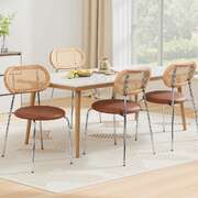 Bring a warm, inviting feel and a touch of retro charm to your home with this striking set of dining chairs. These chairs perfectly blend materials, featuring a breathable rattan backrest paired with a rich brown PU leather seat.
