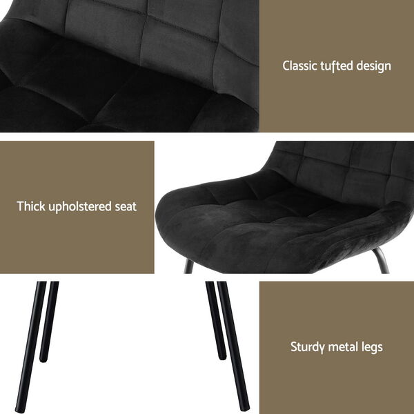 4x dining chairs velvet tufted kitchen lounge cafe accent chair black