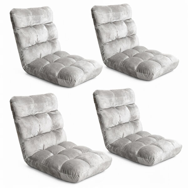 4x Grey Lounge Sofa Bed Flannel Fabric Adjustable Home Comfortable Seating