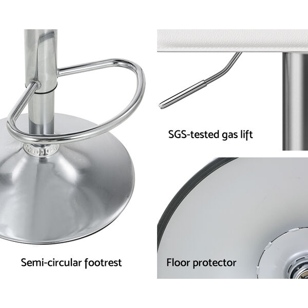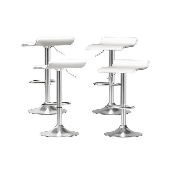 For a gorgeous contemporary addition to your modern home, the Wade Bar Stool is what you need for your kitchen island, bar or dining area. Crafted with care and finesse, the stool effortlessly blends with your existing décor, providing style and comfort. Sink into the luxuriously thick high-resistance foam enveloped in premium white PU leather that covers the smooth wave-styled seat. With a 360-degree swivel, you can effortlessly glide from one conversation to another. Adjust the height of the chair for the perfect fit at any counter or bar. The sturdy steel base with a semi-circular footrest provides the ultimate security, and the base is fitted with an anti-slip floor protector to keep the chair in one place and prevent scratches to your floors. Easy to clean and even easier to install, you can elevate your space right away with a set of Wade Bar Stools from.