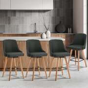 4x Wooden Bar Stool Kitchen Dining Chair Linen Fabric Counter Seat Grey