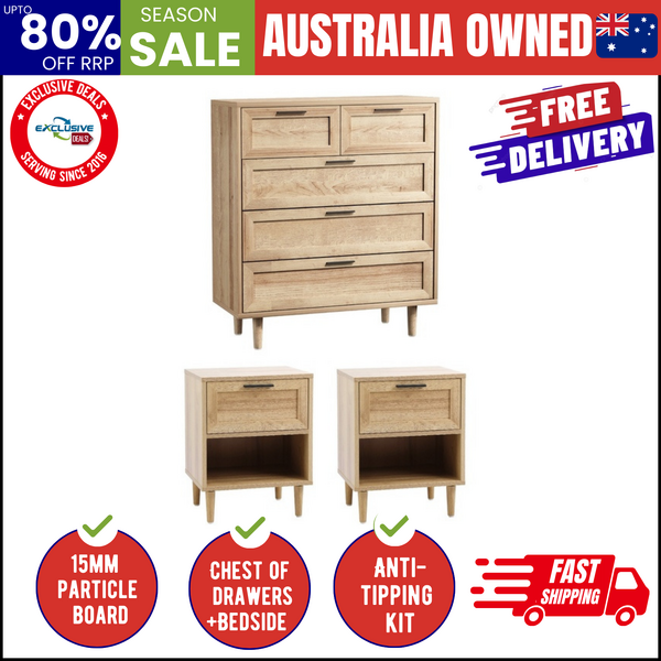 5 Chest of Drawers and 2 Bedside Tables Nightstands Bedroom Set