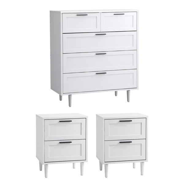 5 Chest of Drawers and 2 Bedside Tables Nightstand Bedroom Set White