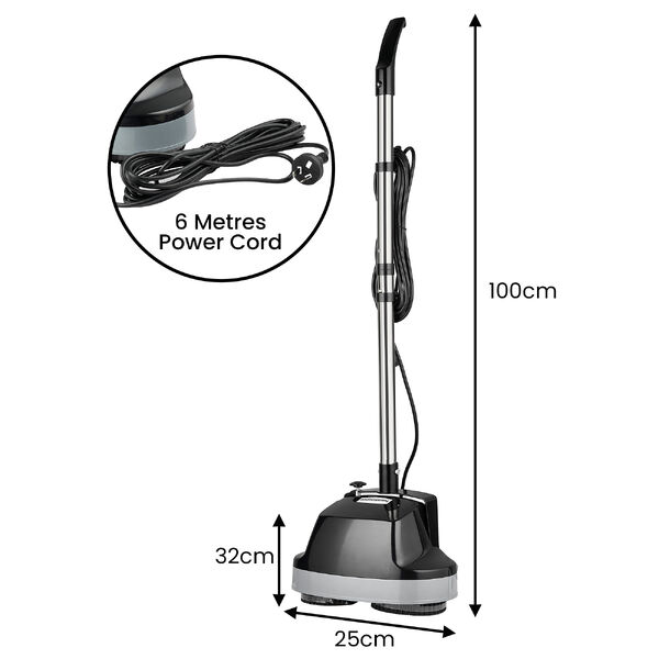 The Hauskeeper Electric Floor Polisher is ideal for maintaining timber, tile and other hard surfaces. It features twin rotating brushes that eliminate the effort required for polishing. Compact for tight areas and around furniture, it suits both home and light commercial use.